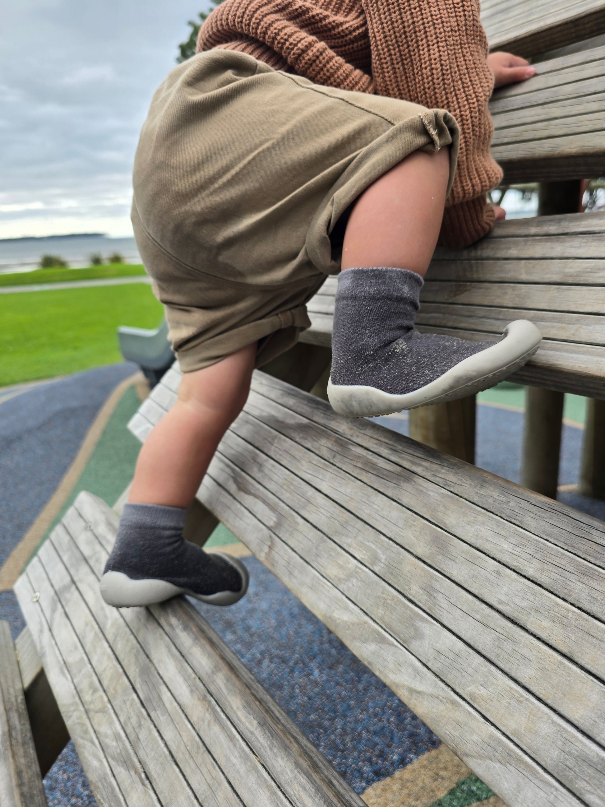 Non-slip soles provide extra grip for standing, climbing, and those first wobbly steps.