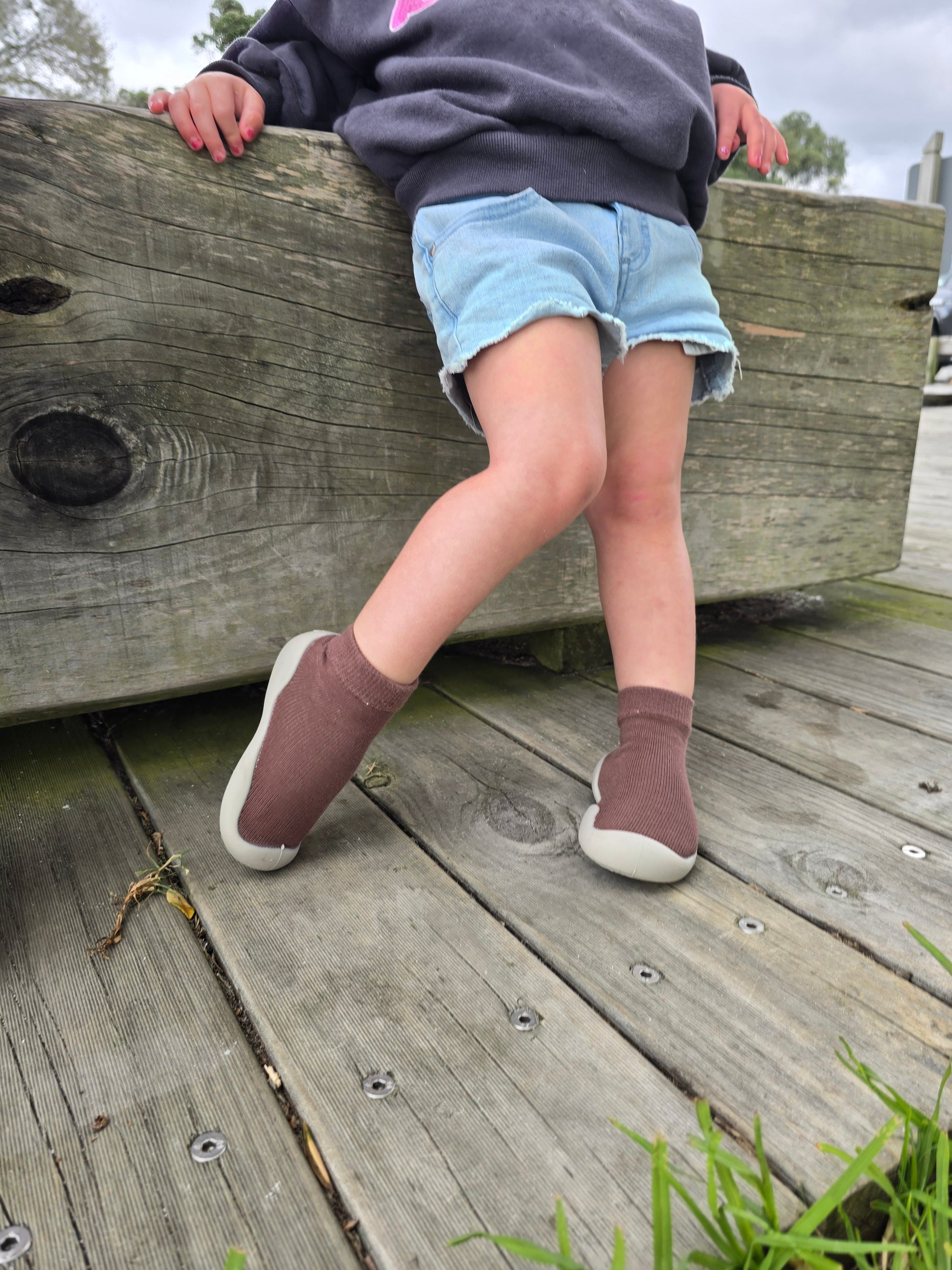 The sock-top design helps keep them snug and in place, so they stay on far longer than traditional hard-sole shoes.